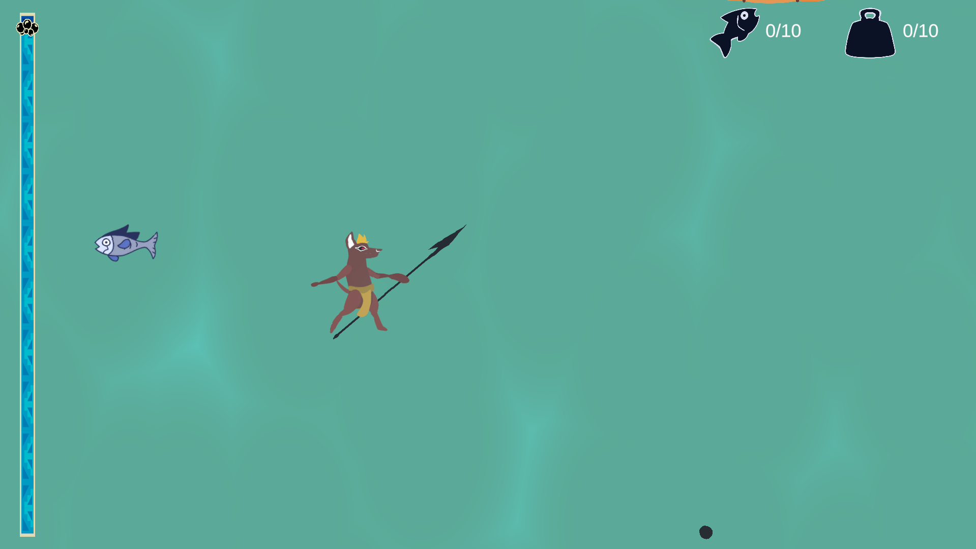 You are a Mochica dog who has gone fishing in the ancient Peruvian sea. You must catch 10 fish before night falls or before you run out of oxygen.
